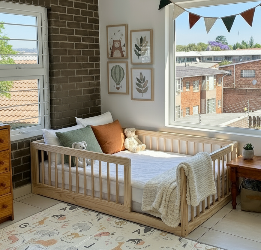 **Why choose our Thulani Bed? It is made with strength, and thick bottom strut to remove rail. It also comes with a base insert so bed is not directly on the floor. Our joinery beats competitors with time, skill, precision & reinforcement. Little ones jump on everything 😆